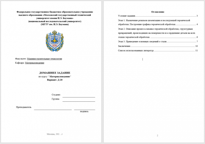 ДЗ Д: Выбор материала и технологии термической обработки вариант 20