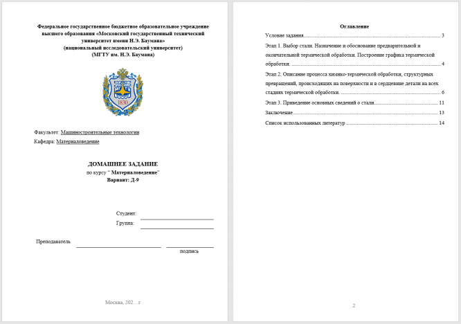 ДЗ Д: Выбор материала и технологии термической обработки вариант 9