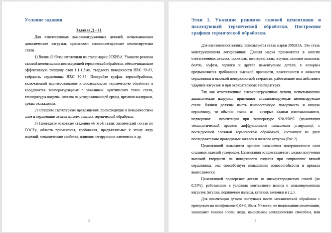 Задание Д – 11. Для ответственных высоконагруженных деталей, испытывающих динамические нагрузки, применяют сложнолегируемые цементируемые стали. 1) Валик 50мм изготовили из стали марки 20ХН3А. Укажите режимы газовой цементации и последующей термической обработки, обеспечивающие эффективную толщину слоя 1,1-1,3мм, твёрдость поверхности HRC 59-63, твёрдость сердцевины HRC 30-35. Постройте график термообработки, включающий науглероживание и последующую термическую обработку в координатах температуравремя с указанием: критических точек стали, температуры нагрева, состава на углероживающей среды, времени выдержки, среды охлаждения. 2) Опишите структурные превращения, происходящие в поверхностном слое и сердцевине детали на всех стадиях термической обработки.