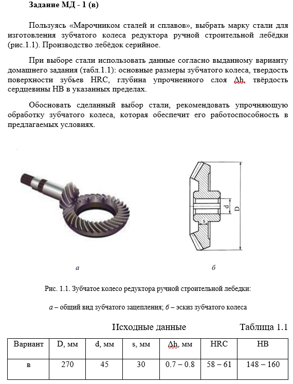 ДЗ МД: Выбор материала и технологии термической обработки вариант 1