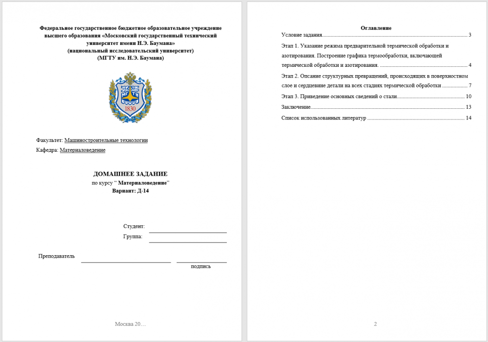 Главная » Учебные материалы » Материаловедение » Домашние задания » МГТУ им. Н.Э.Баумана » Номер Д » Вариант 14 » Выбор материала и технологии термической обработки