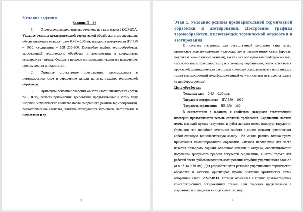 Задание Д – 14. Для ответственных деталей (шестерни, валы, цилиндры двигателей, втулки), работающих в условиях износа, применяют улучшаемые стали после азотирования. Ответственная шестерня изготовлена из стали марки 38Х2МЮА. Укажите режимы предварительно