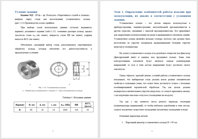 2022-2023 уч. год - Задание МД - 15: Пользуясь «Марочником сталей и сплавов», выбрать марку стали для изготовления установочного кольца (рис.1.15).Производство колец серийное.