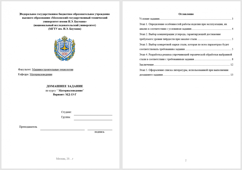 ДЗ МД: Выбор материала и технологии термической обработки вариант 13