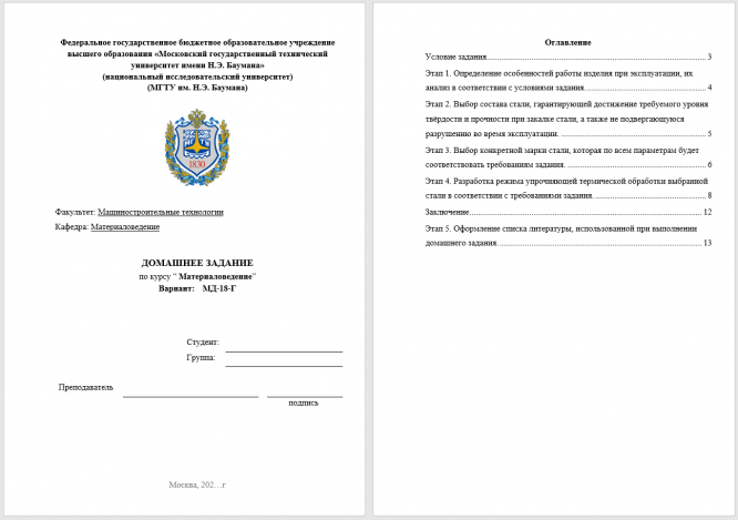 В задаче выбран "Высокий отпуск" при температуре 400 градусов. А температура высокого отпуска более 500. В данных условиях необходимо применять средний отпуск. Именно при нём данный материал будет соответствовать условиям задачи. Сама работа выполнена грамотно, Присутствует много мелких недочётов. Рекомендую к покупке.