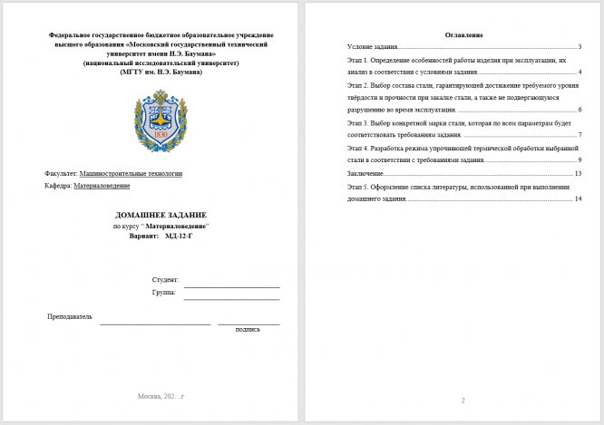ДЗ МД: Выбор материала и технологии термической обработки вариант 12