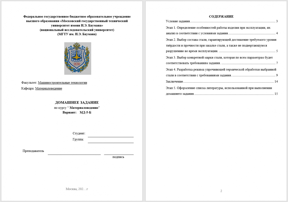 ДЗ МД: Выбор материала и технологии термической обработки вариант 5