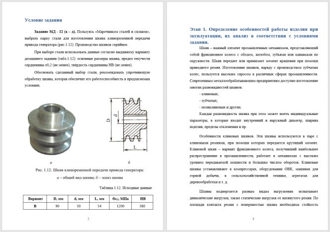 Задание МД - 12 (а – д). Пользуясь «Марочником сталей и сплавов», выбрать марку стали для изготовления шкива клиноременной передачи привода генератора (рис.1.12). Производство шкивов серийное. При выборе стали использовать данные согласно выданному варианту домашнего задания (табл.1.12): основные размеры шкива, предел текучести сердцевины σ0,2 (не менее), твёрдость сердцевины HB (не менее). Обосновать сделанный выбор стали, рекомендовать упрочняющую обработку шкива, которая обеспечит его работоспособность в предлагаемых условиях..