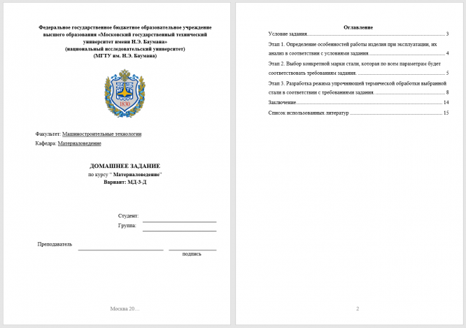 ДЗ МД: Выбор материала и технологии термической обработки вариант 3