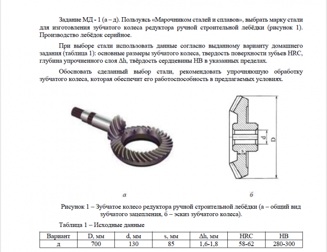 ДЗ МД: Выбор материала и технологии термической обработки вариант 1
