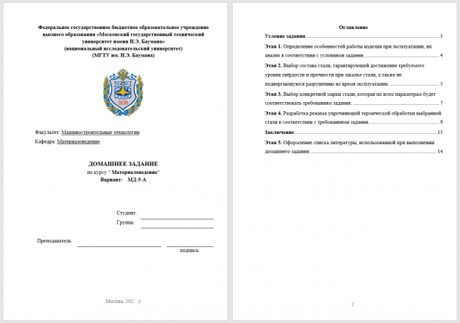 ДЗ МД: Выбор материала и технологии термической обработки вариант 5