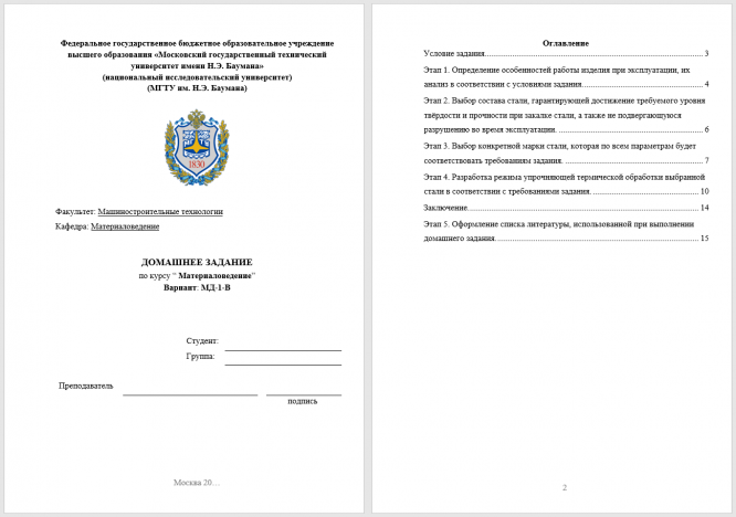 ДЗ МД: Выбор материала и технологии термической обработки вариант 1