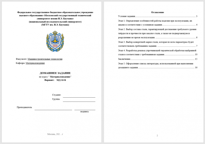ДЗ МД: Выбор материала и технологии термической обработки вариант 16