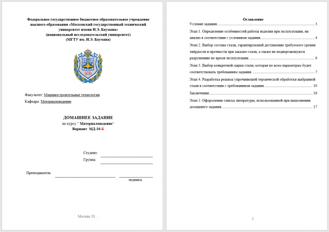 ДЗ МД: Выбор материала и технологии термической обработки вариант 10