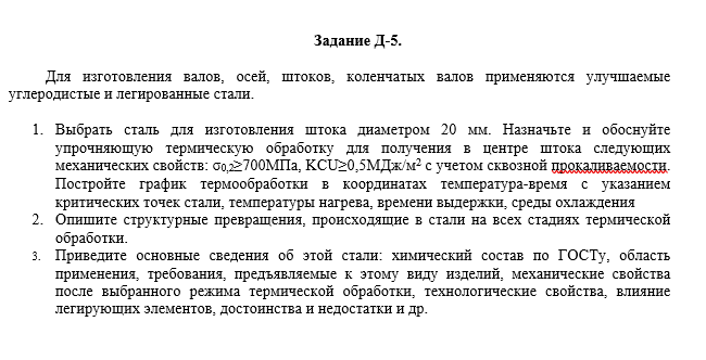 ДЗ Д: Выбор материала и технологии термической обработки вариант 5