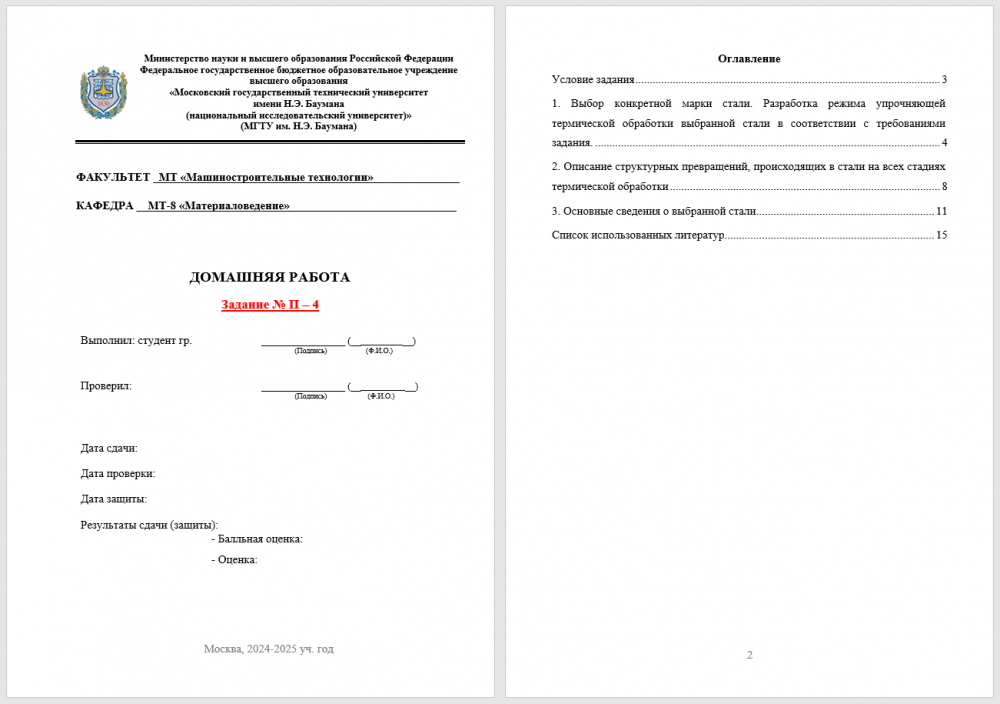 ДЗ П: Выбор материала и технологии термической обработки вариант 4