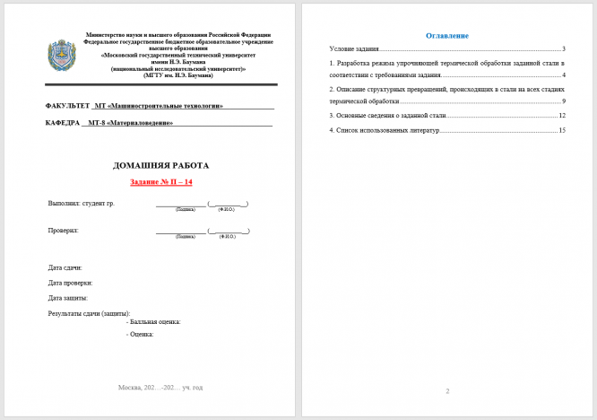 ДЗ П: Выбор материала и технологии термической обработки вариант 14