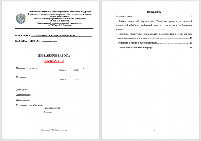 ДЗ П: Выбор материала и технологии термической обработки вариант 2
