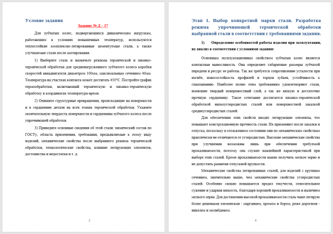Задание Д – 17. Для зубчатых колес, подвергающихся динамическим нагрузкам, работающим в условиях повышенных температур, используются теплостойкие комплексно-легированные цементуемые стали, а также улучшаемые стали после азотирования. Выберите сталь и назн