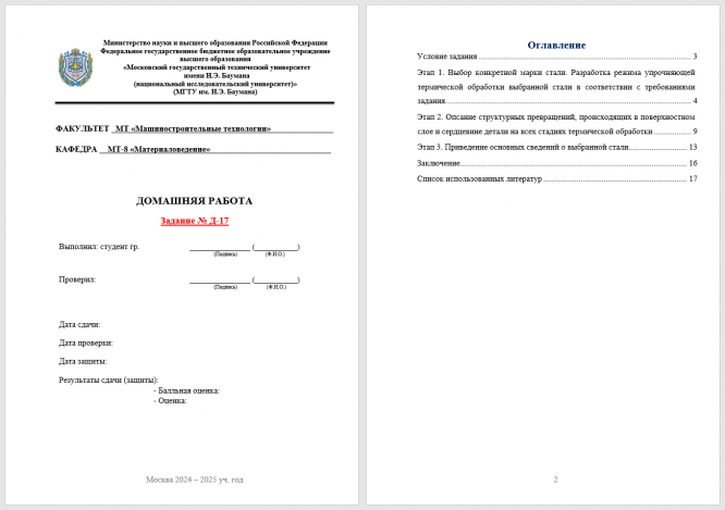 ДЗ Д: Выбор материала и технологии термической обработки вариант 17