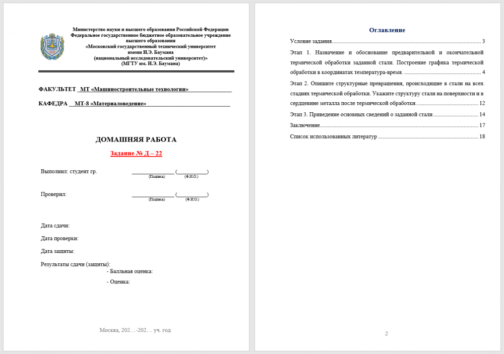 ДЗ Д: Выбор материала и технологии термической обработки вариант 22