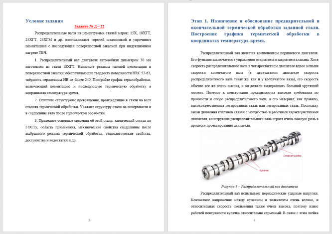 Задание Д – 22. Распределительные валы из цементуемых сталей марок: 15Х, 18ХГТ, 25ХГТ, 25ХГМ и др. изготавливают горячей штамповкой и упрочняют цементацией с последующей поверхностной закалкой при индукционном нагреве ТВЧ. Распределительный вал двигателя