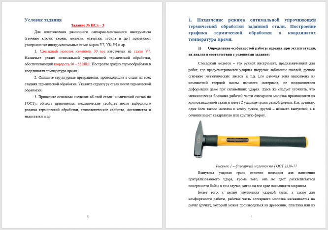Задание ИСл – 3. Для изготовления различного слесарно-монтажного инструмента (гаечные ключи, керны, молотки, отвертки, зубила и др.) применяют углеродистые инструментальные стали марок У7, У8, У9 и др. Слесарный молоток сечением 30 мм изготовлен из стали