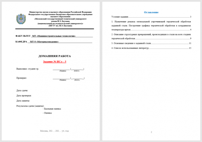 ДЗ ИСл: Выбор материала и технологии термической обработки вариант 5