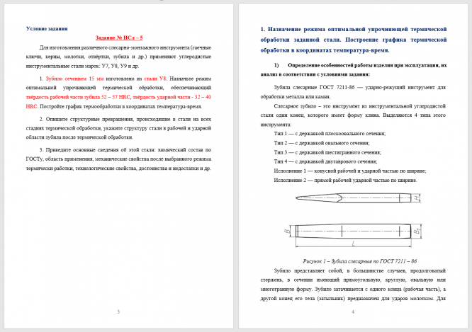 Задание ИСл – 5. Для изготовления различного слесарно-монтажного инструмента (гаечные ключи, керны, молотки, отвёртки, зубила и др.) применяют углеродистые инструментальные стали марок: У7, У8, У9 и др. Зубило сечением 15 мм изготовлено из стали У8. Назна