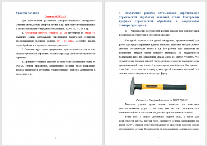 Задание ИСл – 6. Для изготовления различного слесарно-монтажного инструмента (гаечные ключи, керны, отвёртки, зубила и др.) применяют конструкционные и инструментальные углеродистые стали марок: 50, 60, 70, У7, У8 и др. Слесарный молоток сечением 20 мм из