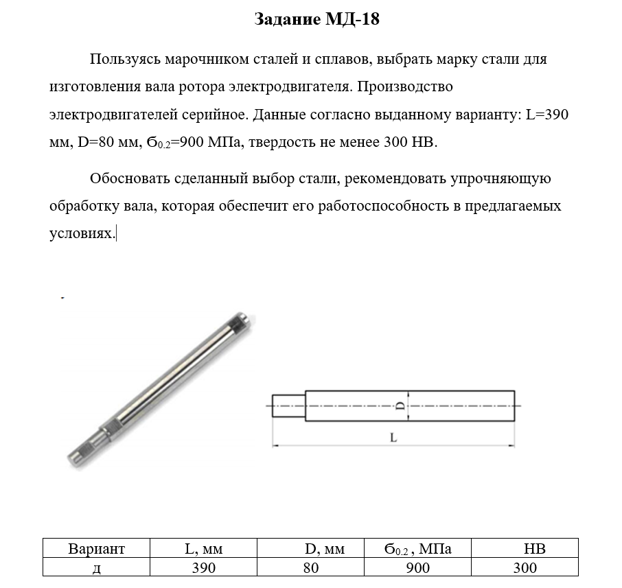 ДЗ МД: Выбор материала и технологии термической обработки вариант 18