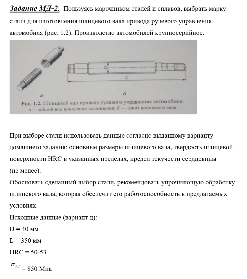 ДЗ МД: Выбор материала и технологии термической обработки вариант 2