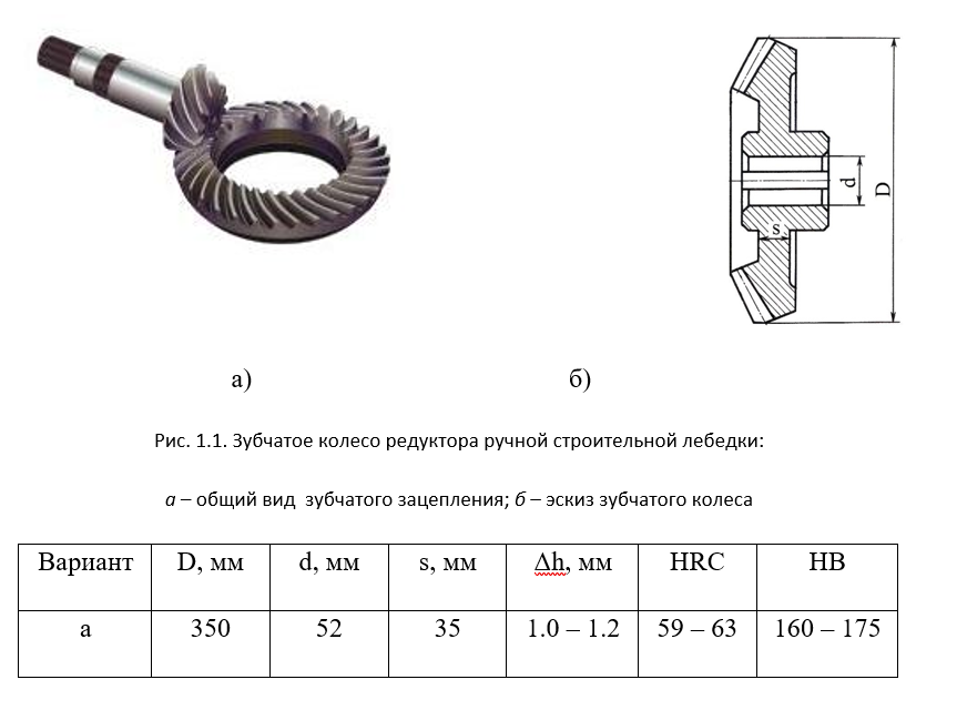 При выборе стали использовать данные согласно выданному варианту домашнего задания (табл.1.1): основные размеры зубчатого колеса, твердость поверхности зубьев HRC, глубина упрочненного слоя Δh, твёрдость сердцевины НВ в указанных пределах.
