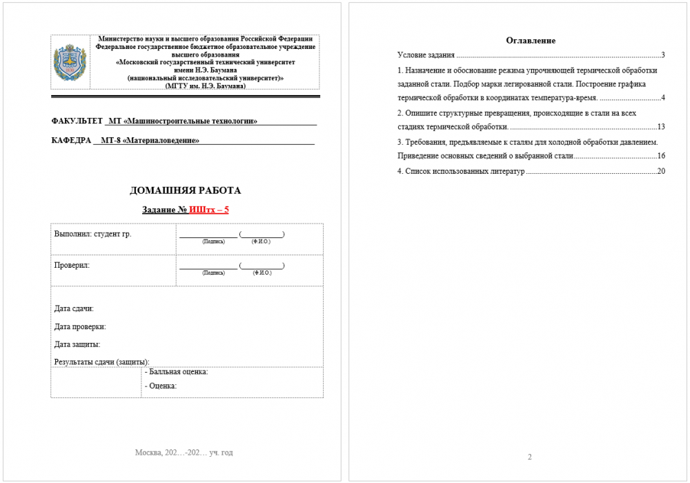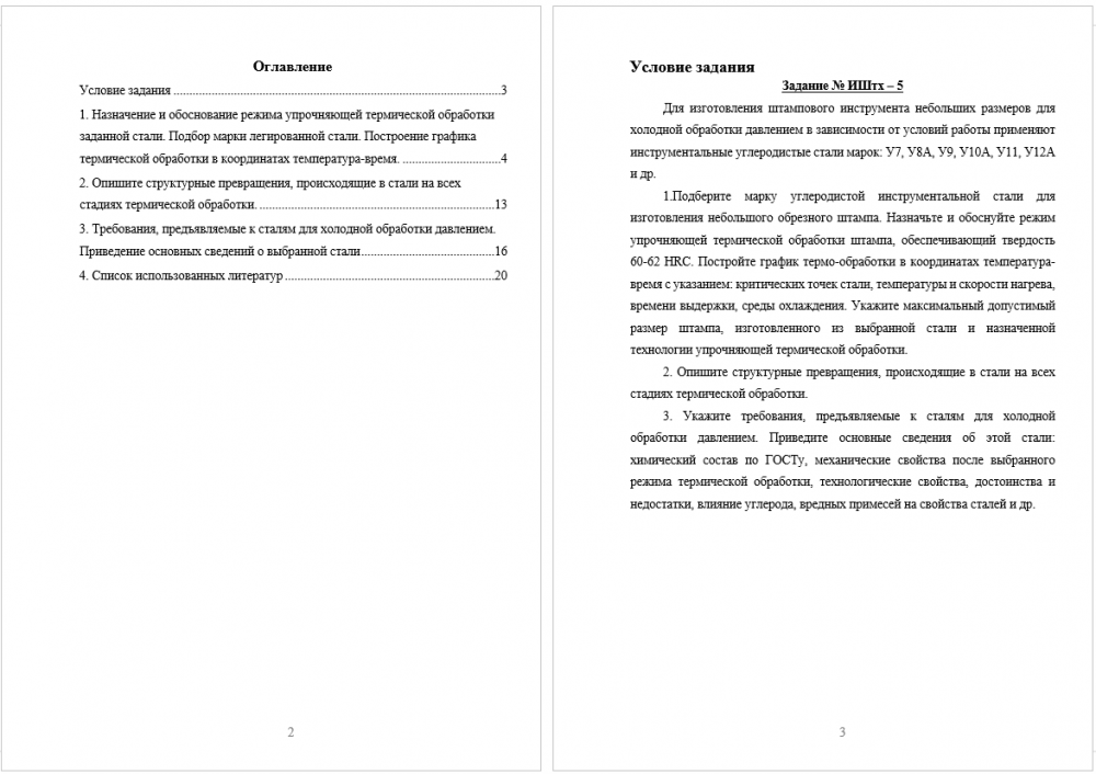 ДЗ ИШтх: Выбор материала и технологии термической обработки вариант 5
