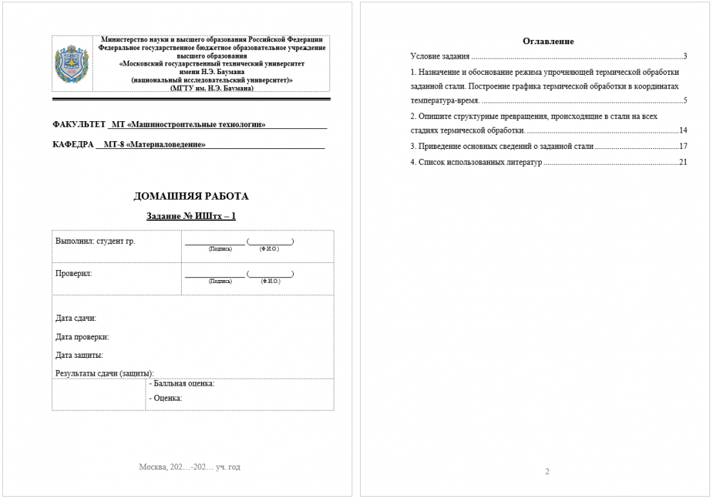ДЗ ИШтх: Выбор материала и технологии термической обработки вариант 1
