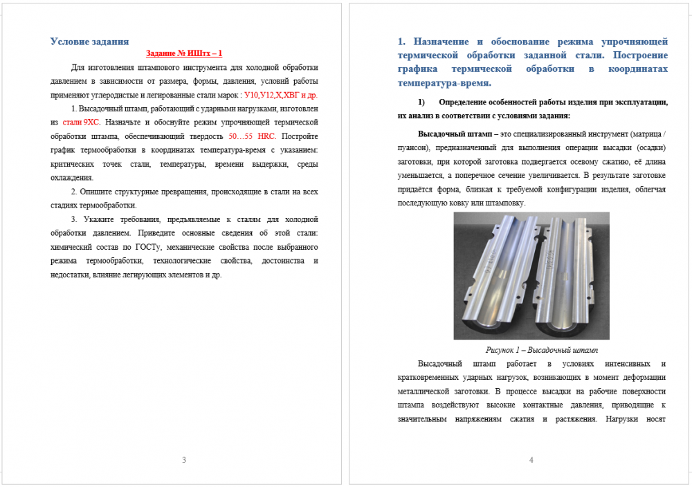 Задание ИШтх – 1. Для изготовления штампового инструмента для холодной обработки давлением в зависимости от размера, формы, давления, условий работы применяют углеродистые и легированные стали марок : У10,У12,Х,ХВГ и др. 1. Высадочный штамп, работающий с ударными нагрузками, изготовлен из стали 9ХС. Назначьте и обоснуйте режим упрочняющей термической обработки штампа, обеспечивающий твердость 50…55 HRC. Постройте график термообработки в координатах температура-время с указанием: критических точек стали, температуры, времени выдержки, среды охлаждения. 2. Опишите структурные превращения, происходящие в стали на всех стадиях термообработки. 3. Укажите требования, предъявляемые к сталям для холодной обработки давлением.