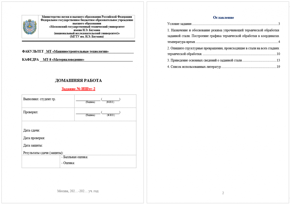 ДЗ ИШтг: Выбор материала и технологии термической обработки вариант 2