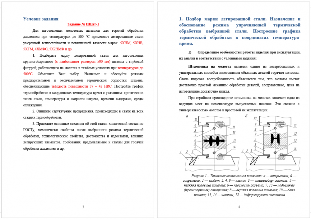 Задание ИШтг – 1. Для изготовления молотовых штампов для горячей обработки давлением при температурах до 500 °С применяют легированные стали умеренной теплостойкости и повышенной вязкости марок: 5ХНМ, 5ХНВ, 5ХГМ, 4ХМФС, 5Х2НМФ и др.
