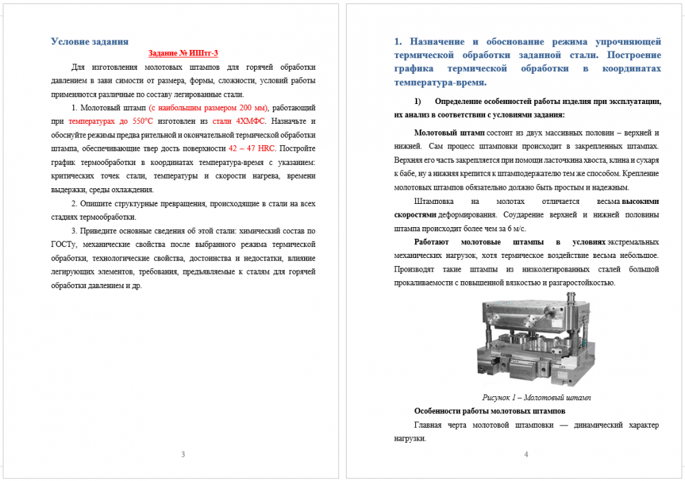 Задание ИШтг – 3. Для изготовления молотовых штампов для горячей обработки давлением в зави симости от размера, формы, сложности, условий работы применяются различные по составу легированные стали. Молотовый штамп (с наибольшим размером 200 мм), работающи