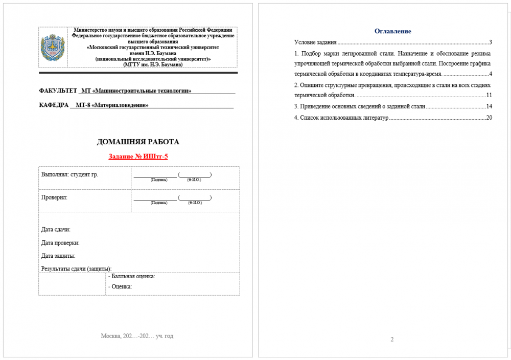 ДЗ ИШтг: Выбор материала и технологии термической обработки вариант 5