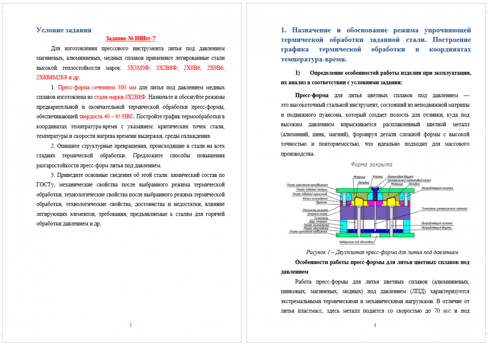Задание ИШтг – 7. Для изготовления прессового инструмента литья под давлением магниевых, алюминиевых, медных сплавов применяют легированные стали высокой теплостойкости марок: 3Х3МЗФ, 3Х2B8Ф, 2X9B6, 2X9B6, 2Х6B8М2К8 и др. Пресс-форма сечением 300 мм для л