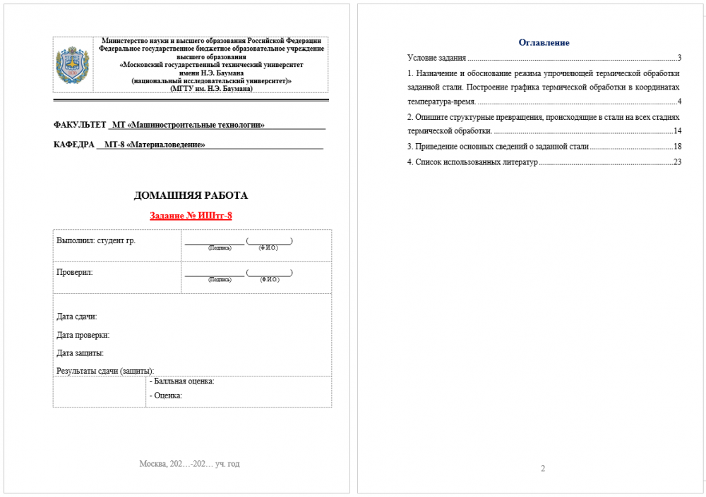 ДЗ ИШтг: Выбор материала и технологии термической обработки вариант 8