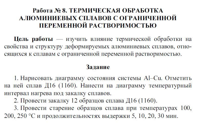 Лабораторная работа 8: Термическая обработка стареющего алюминиевого сплава