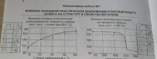 Лабораторная работа 7: Влияние холодной пластической деформации и последующего отжига на структуру и свойства металлов