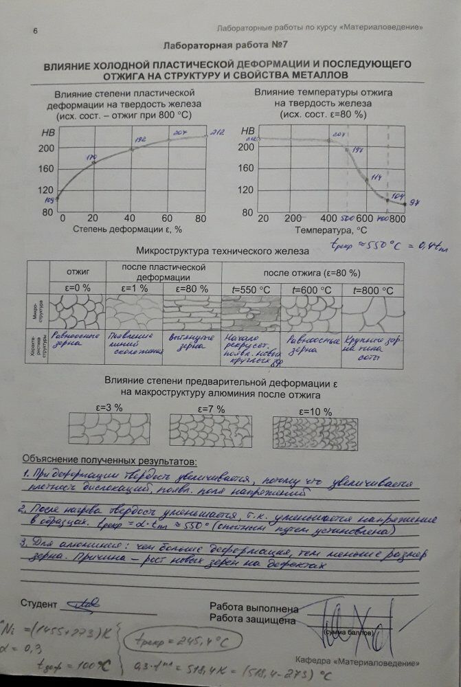 Лабораторная работа 7: Влияние холодной пластической деформации и последующего отжига на структуру и свойства металлов