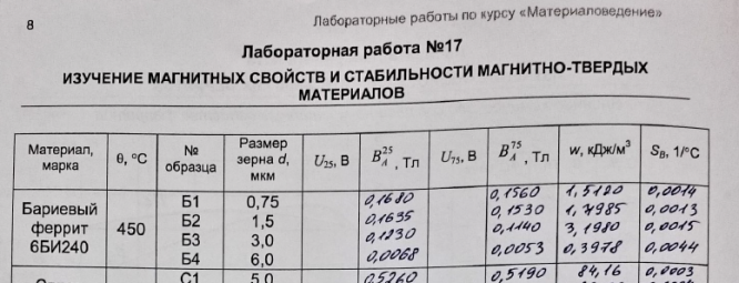 Лабораторная работа 17: Изучение магнитных свойств и стабильности магнитно-твердых материалов