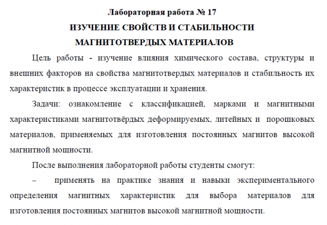 Главная » Учебные материалы » Материаловедение » Лабораторные работы » МГТУ им. Н.Э.Баумана » Несколько классов/семестров » Номер 17 » Изучение магнитных свойств и стабильности магнитно-твердых материалов
