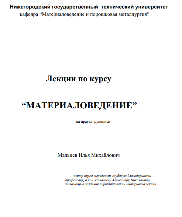 Для студентов МГТУ им. Н.Э.Баумана по предмету МатериаловедениеЛекции по курсу “материаловедение”Лекции по курсу “материаловедение”