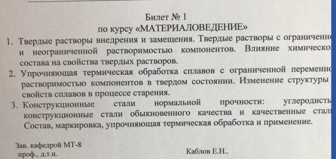 Для студентов МГТУ им. Н.Э.Баумана по предмету Материаловедение16 билетов (2019 год)16 билетов (2019 год)