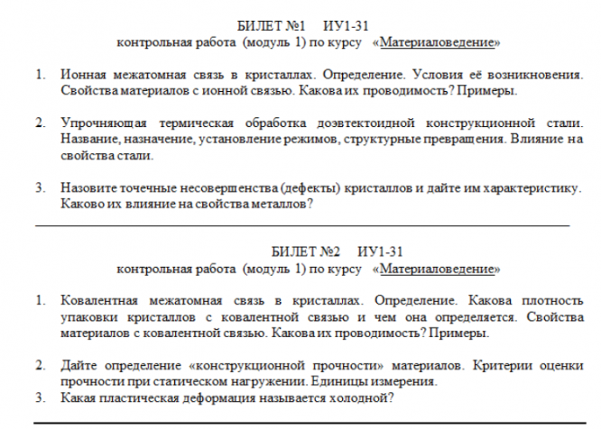 Для студентов МГТУ им. Н.Э.Баумана по предмету МатериаловедениеБилетыБилеты